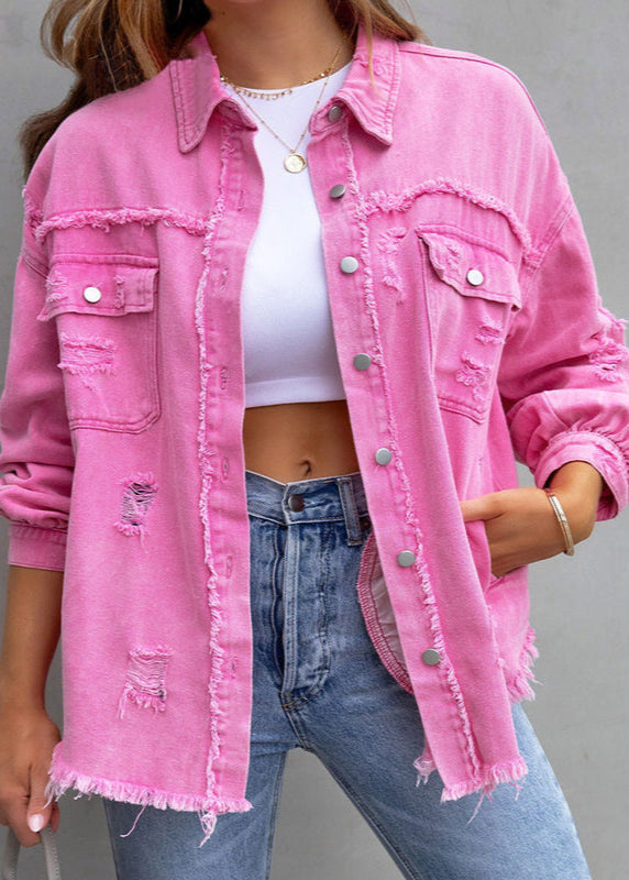 - Détails : Ourlet effiloché, accents déchirés, boutons métalliques