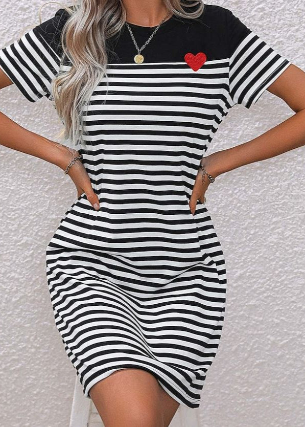- Design moderne : l'imprimé rayé et le patchwork en forme de cœur confèrent à cette robe une touche tendance, tout en restant élégante et discrète.