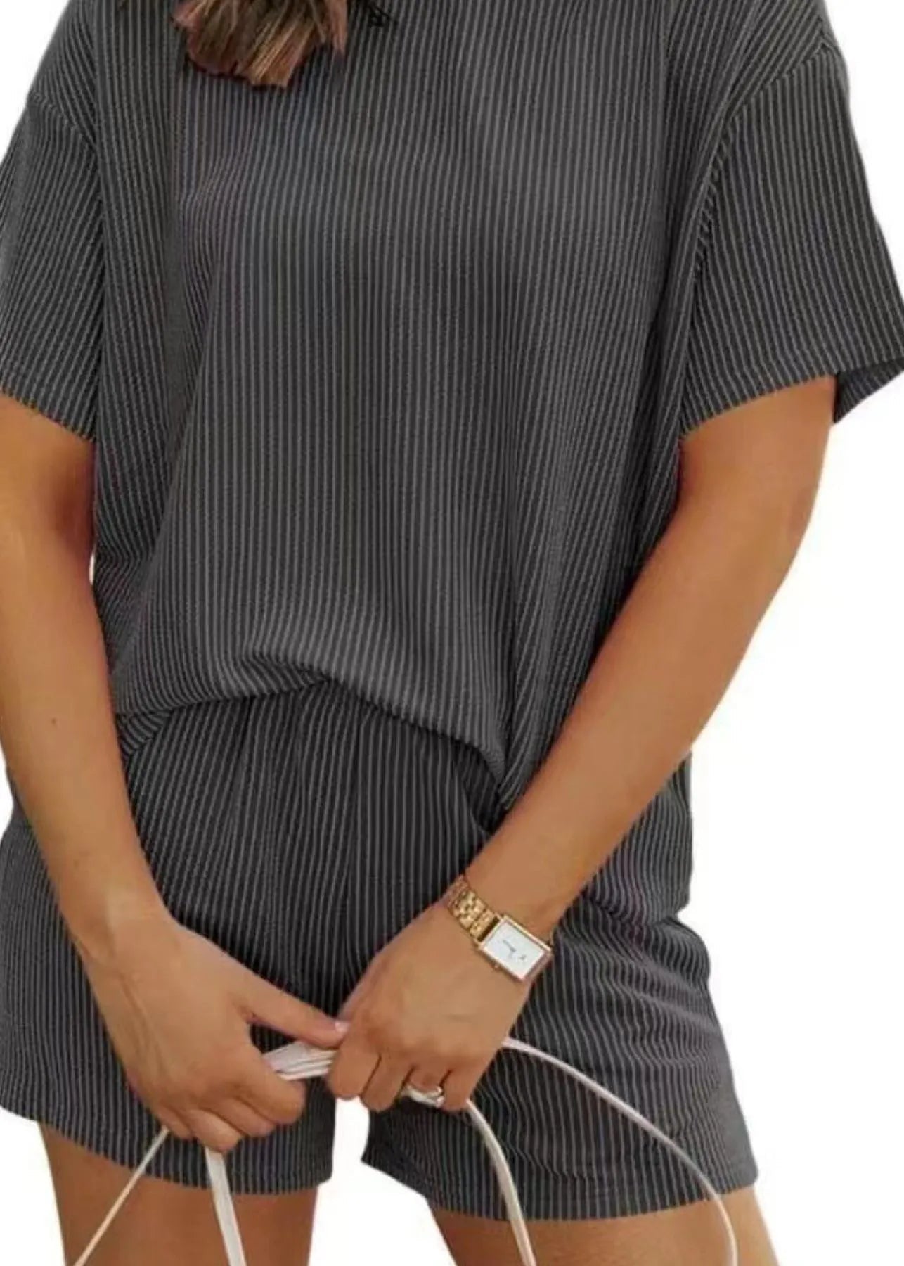 Optez pour un look confortable et tendance avec notre ensemble Lina. Composé de deux pièces, cet ensemble est confectionné dans un tissu doux à fines rayures verticales et est idéal pour les journées de détente à la maison ou les sorties en ville.