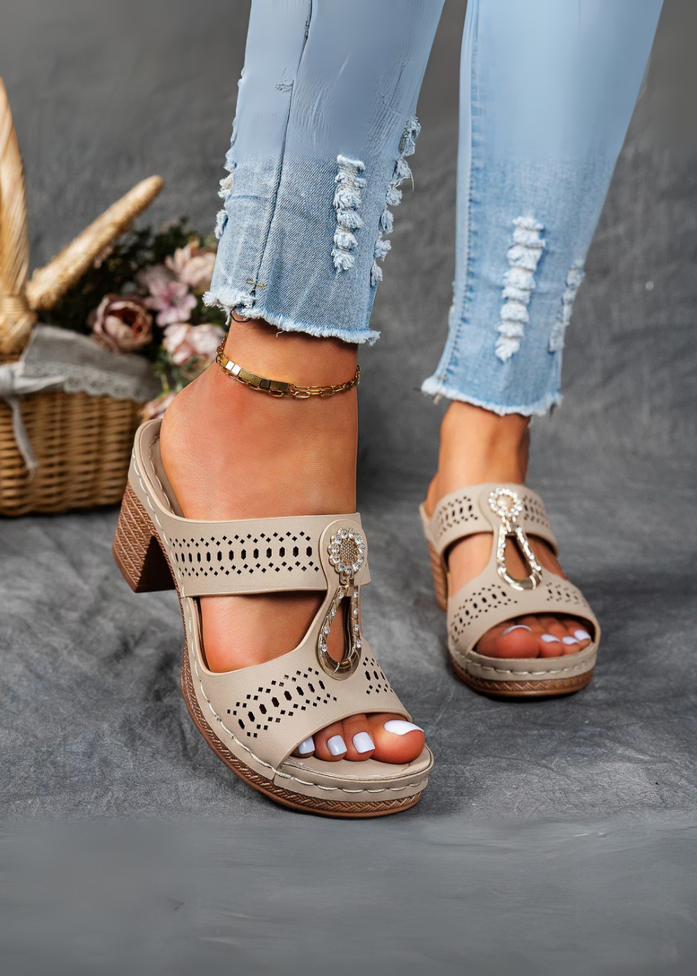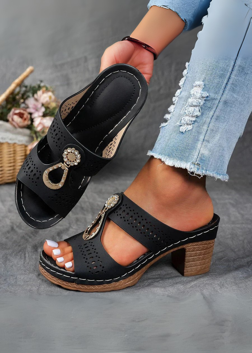 Chaque paire est ornée d’une broche en strass scintillante, ajoutant une touche chic à un modèle orthopédique. Ces sandales ne se contentent pas d’être confortables — elles deviennent de véritables accessoires de mode, parfaits pour passer du style décontracté à une allure semi-formelle sans effort. Un équilibre parfait entre beauté et bien-être.